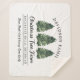 Custom Christmas Tree Farm sherpa blanket in green, charcoal grey, and white colours. Features a modern rustic typography design with 3 fresh-cut green watercolor Christmas trees. Personalise with with your family name, location, and other custom text. Makes a unique personalised accent to your farmhouse stye holiday decor.