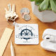 Chic custom summer vacation keychain gift for your beach cruise on the ocean featuring a navy blue boat steering wheel. This nautical themed design is perfect for classy matching family reunion keepsakes to commemorate the special trip. Personalise with your last name and year.