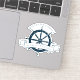 Chic custom summer vacation keepsake sticker for your beach cruise on the ocean featuring a navy blue boat steering wheel. This nautical themed design is perfect for classy matching family reunion keepsakes to commemorate the special trip. Personalise with your last name and year.