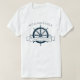 Chic custom summer vacation t-shirts for your beach cruise on the ocean featuring a navy blue boat steering wheel. This nautical themed design is perfect for classy matching family reunion tees to commemorate the special trip. Personalise with your last name and year.