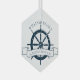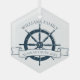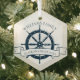 Chic custom summer vacation Christmas ornament gift for your beach cruise on the ocean featuring a navy blue boat steering wheel. This nautical themed design is perfect for classy matching family reunion keepsakes to commemorate the special trip. Personalise with your last name and year.