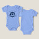 Chic custom summer vacation baby bodysuit for a boy or girl on a beach cruise on the ocean featuring a navy blue boat steering wheel. This nautical themed design is perfect for classy matching family reunion tees to commemorate the special trip. Personalise with your last name and year.