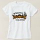 Cool custom annual family Halloween party women's t-shirt that features a creepy skeleton hanging over spooky orange and black text and an awesome Jack O Lantern. Customise with your big bash information for all of your guests.