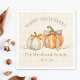 Get ready to welcome the spooky season in style with this personalised "Happy Halloween" napkin. Featuring charming hand-painted pumpkins tied with bows, this design brings an elegant yet playful autumn touch to your Halloween festivities. Customise with your family name and date for a fun and festive touch to your Halloween dinner, party, or seasonal gathering. The soft orange and ivory tones blend classic fall elements with a lighthearted Halloween vibe, perfect for those who want to celebrate with style.