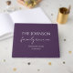 Capture the memories of your special gathering with our purple modern minimal elegant family reunion guestbook. This customisable keepsake is designed with a sleek, classic script to beautifully highlight your family name and create a timeless record of your event. Perfect for marking an annual family reunion, a summer family BBQ, or a fall autumn gathering, this personalised family memory journal is a must-have for collecting signatures, heartfelt messages, and memories from loved ones.