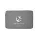 This dark grey bath mat has a white ship's anchor and a place to personalize the bath mat with the family's name and year established. All text is white. The text can be edited or deleted.