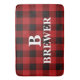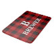 This design features a red and black tartan pattern along with a monogram in the centre of the mat. You can personalise this item with your initial and family's last name by using the custom template.