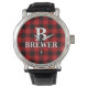 This design features a red and black tartan pattern along with a monogram in the centre of the watch. You can personalise this item with your initial and family's last name by using the custom template.
