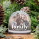 Honour the love of family with this “Family” custom snow globe with bold serif lettering and personalised surname by Redwood & Vine Design Co. Designed with your favourite portrait and modern typography, this keepsake is perfect for holiday traditions, milestone celebrations, or everyday memory display. A thoughtful gift for parents, grandparents, or any loved one who cherishes family.