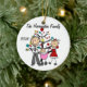 A pretty round ceramic keepsake Christmas holiday ornament features a stick figure dad, mum, and baby girl in a pink carriage in front of the decorated Christmas tree and areas where you can add text including the current year and family name. This is an adorable gift for any family to commemorate the year!
