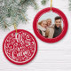 Custom Family Photo All Is Calm Christmas Red Ceramic Tree Decoration