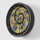 This beautifully intricate photo collage clock includes your family memories spiralling inward towards the centre in a nautilus shape. The spiral is made in black with gold-coloured numbers and dashes to tell time, all spinning towards the middle. Use the template to upload 19 pictures. SOME TIPS: Because they form circle shapes, parts of your photos will be cut off. Photos at the ends of the spiral will be very small. Check the clock close up before ordering. If you can't find a family photo that looks good in a certain spot, consider filling that space with your favourite nature photo, flowers from your garden, or a closeup of a pattern or family quilt. IF YOU NEED HELP: "Contact" PictureCollage and select "Design Question."