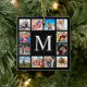Create your own personalised 12 photo collage,Christmas holiday ornament with your custom images on a simple modern black background. The Christmas holiday ornament face also features your family name, established year and a "Love" handwritten script. Add your favourite photos, designs or artworks to create something really unique.