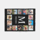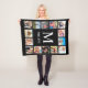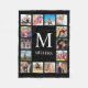 Create your own personalised 14 photo collage, fleece blanket with your custom images on a simple modern black background. The fleece blanket face also features your monogram and name. Add your favourite photos, designs or artworks to create something really unique.