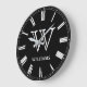 Create your own personalised, roman number wall clock with your monogram and name on a simple modern black background.