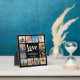 Create your own personalised 12 photo collage, plaque with your custom images on a simple modern black background. The plaque face also features your family name, established year and a "Love" handwritten script. Add your favourite photos, designs or artworks to create something really unique.