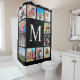Create your own personalised 12 photo collage, shower curtain with your custom images on a simple modern black background. The shower curtain face also features your monogram. Add your favourite photos, designs or artworks to create something really unique.