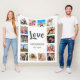 Create your own personalised 14 photo collage, fleece blanket with your custom images on a simple modern white background. The fleece blanket face also features your family name, established year and a "Love" handwritten script. Add your favourite photos, designs or artworks to create something really unique.