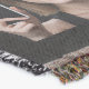 A quality printed throw has its advantages. This is a much finer weave throw than its loopier cousins, and though lighter, it is worth the investment for custom room accessorizing. The back is much prettier than the typical brown, and the fringe on the long sides very vivid, the selvage nicely done. Before photographing, I washed the throw in cold water, delicate, with a thicker woven throw the same size. On tumble dry low, this throw was dry in half the time as the other. This is a very practical quality if you use throws for furniture covers or to wrap up in frequently. The sleekness of the fabric makes it a great layer for accenting or protecting without the feeling of sitting on too much stuff. Perfect for napping or when you feel a light chill coming on. The color printing is beautiful and on this fabric, matched the design and color of my Photoshop image. This is an advantage for blending room fabrics and colors. The fringe on the short sides prints the colors from the design image and therefore varies from the side fringe. I streaked a white fractal line through the plaid pattern to give the illusion of weaving. This printed as crisp as an illusory thread, and put some white in the short side fringe, showing another advantage of print vs loomed- for artistic purposes, line lines, detail, and color integrity can be planned and preserved. My loomed throws have color limitations and more of a needlepoint texture. Print throws reproduce an exact image. The throw felt a little stiff straight out of the package, but this went away in the first delicate wash. Of course I searched the wash water for ink or bleeding and there was none.