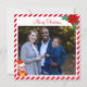Custom family and cute little elf on red and white striped Christmas Greeting Card. Add your favourite picture and enjoy!