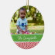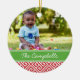 Beautiful custom designed Christmas photo ornament with a trendy Greek key print border. Add your own photos to create the perfect family keepsake or a personalised gift for your family and friends. Add text in the coloured ribbon frame with the year, your name monogram, or any other message you want. Click Customise It to edit fonts or add more photos to create your own unique one of a kind holiday ornament design. A special and unique gift!