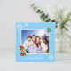 Custom family photo and cute little elf on light blue Christmas Greeting Card.
