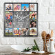 Create your own personalised 12 photo collage, roman number wall clock with your custom images on a rustic farmhouse style wooden plank background. The clock face also features your family name, established year and a "Love" handwritten script. Add your favourite photos, designs or artworks to create something really unique. To edit this design template, simply upload your own images and edit text fields as shown above. You can easily add more text or images, customise fonts and background.