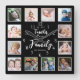 Custom Family Quote 12 Photo Collage Black Square Wall Clock