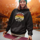 This cool orange vintage sunset over rocky mountains in nature makes a great image for a set of customised hoodies for a family reunion, road trip, or summer vacation. Commemorate your holiday week with a matching hoodie for mum, dad, brother and sister. Just add your own last name and the year with our personalisation tool.