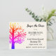 This colorful save the date flat note card informs your family members of the venue and dates for the upcoming family reunion. The background is floral white. Easily customize this personal announcement using the Design Tool template provided. You'll have the option to edit font color, size, style-- and more. Choice of rounded corner style card, other sizes and paper types. Made and Printed in the USA.