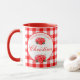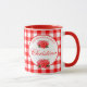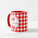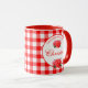Customise with family name and personal name red gingham check plaid pattern combo family name mug. Add "kitchen" or a special name for a great gift idea.