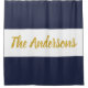 Custom Faux Gold Script Template on Black & White Shower Curtain