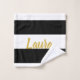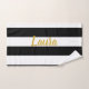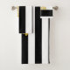 Custom Faux Gold Text on Black and White Striped Bath Towel Set
