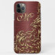 Contemporary glamourous shiny yellow gold metallic looking romantic vintage damask paisley flowers vine pattern on a dark burgundy wine red faux metal background. With room to customise or personalise with monogram or initial of your choice. Beautiful, modern and cool cover for the trend-savvy and art-loving hip trendsetter, artsy motif lover who wants to protect their phone from dust and dirt, wear and tear. This design is available Apple iPhone 6, 7 and 8 Plus, 10 or X, XR, XS , 11, 12, and 13 Mini and Pro Max cellphone cases. Show off your personal style, look fashionable trendy and feel stylish with a unique design on a mobile device accessory of your choice.