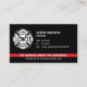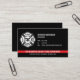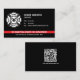 This design features a firefighter flag theme with a thin red line stripe. Customise with the name, position, and contact information of the firefighter, captain, chief or any employee working at the fire department. Features a QR code on the back to add your website.