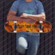 Customize this awesome skate deck (available with trucks and wheels, also) with your name or other text. It comes with faux fiery flames to keep you energized. Totally rad! Stay fired up while you bust an ollie. Not your usual board, so skaters, let your brain chill out while you are chilling out on your beautiful board. This deck is sick, and it makes a great gift for the skater in your life. Great for hanging on the wall as artwork, as well. More patterns available in the Paws Charming shop. No need to run with the pack with your deck.