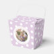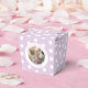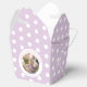 Make your little one's big day even more memorable with these personalised Birthday Favour Boxes. Featuring a sweet lavender and white polka dot pattern, this design is centred around a custom photo frame to showcase the birthday star. Perfect for filling with sweets, small toys, or gourmet treats, these boxes add a professional and heartfelt touch to your party decor.