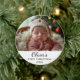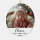 Personalise with baby's name, the year, and one photo on the front and one on the back to create a baby's first Christmas keepsake ornament and gift for a first Christmas.