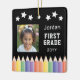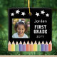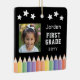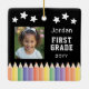Featuring your child’s photo surrounded by playful coloured pencils, this vibrant design includes their name, year, and grade for a fun, personalised touch. A perfect keepsake to remember those early school days and a thoughtful gift for parents and grandparents. Celebrate your little learner with our First Grade Back to School Colourful Photo Keepsake Metal Ornament!