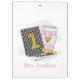 This first grade teacher clipboard is a cute teacher gift. Pattern has a black polka dot notebook with a gold one, heart coffee, ruler, pen and pencil. This black polka dot notebook design can be found on other items in my shop, PageCreativeDesigns.