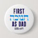FIRST HANUKKAH AS DAD button with CUSTOMIZABLE TEXT. Hanukkah is written in Hebrew. You can CUSTOMIZE the 'AS DAD' (eg. replaced with MOM, perhaps?) and PERSONALIZE with your baby name and/or year. A beautiful milestone souvenir button for new dad celebrating his first 'paternal' Hanukkah. Matching sweatshirt and Mum version available.