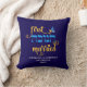 Cute FIRST HANUKKAH MARRIED Throw Pillow with CUSTOMIZABLE NAMES & YEAR. Hanukkah is written in Hebrew. Design shows Hanukkah blue handwriting script typography with blue and yellow dreidel. A beautiful souvenir for couples celebrating their first married Hanukkah. Design is repeated on the back. English version available separately.