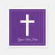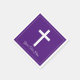 Elegant religious cross Christian faith custom paper napkins. Add your own spiritual text. Use this design for wedding party, bridal shower, first holy communion of baby boy or girl, baptism, christening, confirmation, thank you, memorial, sympathy, believe, funeral, Easter, ordination, ordainment, remembrance, commemoration, Holidays etc. Modern Christianity symbol for Jesus Christ and God with purple or custom background colour. Custom napkins for friends, family, bride, bridesmaids, maid of honour, flower girl, kids, church pastor, priest, deacon, ministry, co worker, boss, grandparents, Catholic, Baptist, Lutheran, Evangelical, Methodist Protestant and other religions. Add your own bible scripture or verse.
