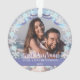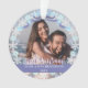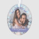 Fancy purple hue personalised photo ornament to display your own special memory. The snowflakes and ribbon in soft blue and purple colour encircles the photo, creates a dreamlike atmosphere. The word "First Christmas" is designed in a beautiful handwritten white script style and with a shadow so that it will be displayed clearly on either light or dark background. Easily place your own memorable photo in place of the template photo as well as the year to make your own ones and send them to your friends and family. What a fantastic way to celebrate your first married Christmas!