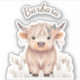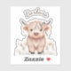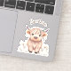 Personalised first name rustic cute modern boho highland cow on white background sticker, ideal for decorating for school supplies or anything you want.