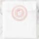 Personalised First Tooth party decorations. Peach pink sticker with cute baby tooth, editable name and milestone date. Visit the shop to see all the First Tooth collection.