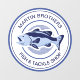 Customise this family fishing shop window cling for a fish and tackle shop to use for store marketing. A cool periwinkle and navy blue fisherman design with an open mouthed bass and your custom text or last name.