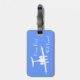 The front of this whimsical design features a flight attendant serving a glass of wine and unique text that reads: "Bon Voyage". A muted cityscape completes the look. The reverse side has a white silhouette of an aeroplane on a customisable blue background with customisable text that reads: "Have Bag Will Travel". You can also customise the background colour by using the "customise" button and then selecting "edit" and choose your background colour. This unique luggage tag makes a great gift for that flight attendant or world traveller in your life!