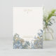 This elegant flat note card features a beautiful floral design, gracefully showcasing delicate flowers in stylish shades of blue complemented by sophisticated gold accents. A timeless Shakespeare quote in refined script typography—"Where words are scarce, they are seldom spent in vain."—adds literary charm and a thoughtful touch to your correspondence.