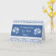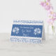 A very pretty 'Get Well Soon' card to personalise. The text is white on Indigo Blue and the card is decorated with a floral pattern in Blue on White, a faux lace edging and white lacy floral motifs, from a hand-drawn design by Judy Adamson.